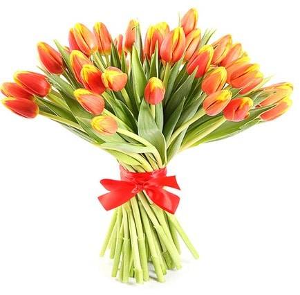 Два цвета в тюльпане делают цветок еще красивее и ярче, даря огромный заряд позитива и тёплых эмоций. Красный покажет, насколько вы любите человека и как он дорог сердцу, а жёлтый продемонстрирует важность радости и улыбки. Подходит букет для приятного сюрприза любому члену семьи или в качестве извинения. Цветы вызовут лишь положительные эмоции и укрепят любые отношения, а насыщенный аромат останется в памяти навсегда.